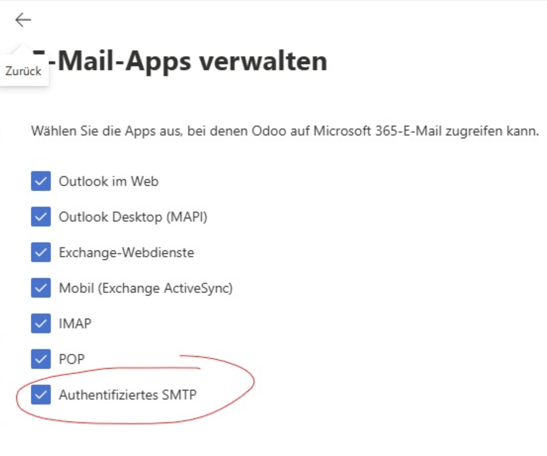 Das Problem: Odoo verwendet klassisches SMTP – und Microsoft sperrt es standardmäßig