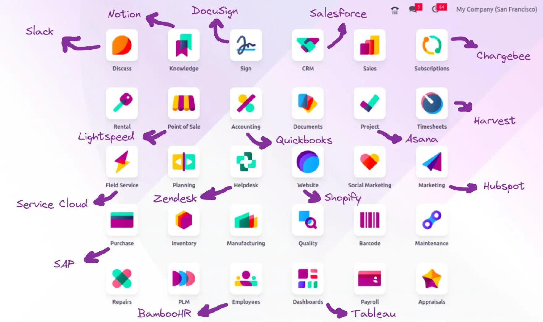 die viele Enterprise-Funktionen abdecken – von Finanzbuchhaltung über DMS bis Helpdesk.